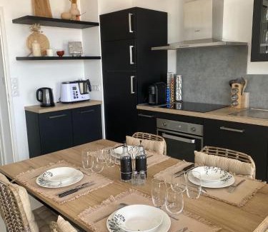 A recently renovated apartment, Appartement cosy 2 ch avec toit terrasse & parking - Lumineux et calme offers accommodations in Les Sables-d'Olonne. This property offers access to a terrace, free private parking, and free Wifi. The accommodation offers an elevator and a mini-market for guests. This apartment includes 2 bedrooms, a living room and a flat-screen TV, an equipped kitchen with a dining area, and 1 bathroom with a shower and a washing machine. Towels and bed linen are offered in the apartment. The property has an outdoor dining area. Grande Beach is 1.5 miles from the apartment, while Les Sables D'Olonne Arena is 1.4 miles from the property. La Rochelle - Île de Ré Airport is 63 miles away.