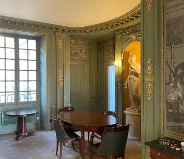 Appartement dans château offers accommodations in Limay, 28 miles from Palace of Versailles. With free private parking, the property is 23 miles from Saint-Germain Golf Course and 28 miles from Gardens of Versailles. Guests can use a garden. With free Wifi, this 2-bedroom apartment provides a flat-screen TV, a washing machine, and a fully equipped kitchen with a dishwasher and oven. Towels and bed linen are provided in the apartment. The property offers garden views. Paris - Orly Airport is 45 miles away.
