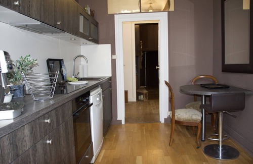 The kitchen is equipped with an oven, a refrigerator, and a dishwasher, as well as a coffee maker, an electric kettle, and a microwave. Bathroom amenities include a hair dryer, towels, and toilet paper. And there's access to laundry facilities, so you can even pack a bit lighter. Other amenities at this 1-bedroom, 1-bathroom rental include bed sheets, an ironing board, and heating.