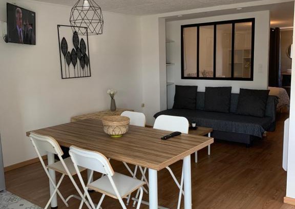 Appartement dans maison basque is located in Mouguerre, just 10 miles from Biarritz La Négresse Train Station and 17 miles from Saint Jean de Luz Train Station. Both free Wifi and parking on-site are accessible at the vacation home free of charge. FICOBA is 25 miles from the vacation home. The vacation home consists of 1 bedroom, a living room, a fully equipped kitchen with an oven and a coffee machine, and 1 bathroom with a shower. A flat-screen TV is available. For added privacy, the accommodation features a private entrance. Saint Jean Baptiste Church is 17 miles from appartement dans maison basque, while Hendaye Train Station is 25 miles from the property. Biarritz Airport is 8.1 miles away.