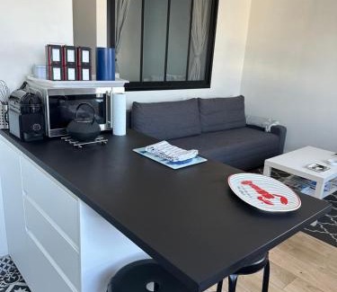 Featuring free bikes, Appartement Design VII Port de Tréboul-Douarnenez provides accommodations in Douarnenez. Among the facilities at this property are private check-in and check-out and bicycle parking, along with free Wifi throughout the property. Quimper Train Station is 16 miles from the apartment and Cornouaille Theatre is 15 miles away. Providing a terrace and sea views, the apartment includes 1 bedroom, a living room, flat-screen TV, an equipped kitchen, and 1 bathroom with a walk-in shower. Towels and bed linen are provided in the apartment. The property has an outdoor dining area. There is a coffee shop, and packed lunches are also available. Plage Saint Jean is a 7-minute walk from the apartment, while Departmental Breton Museum is 16 miles away.
