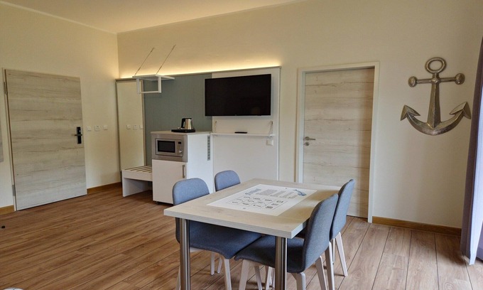 Discover a modern vacation apartment with space for up to six people – ideal for families and groups! The bright, welcoming rooms create a cozy atmosphere that invites you to play, relax, and unwind. Comfortable sleeping arrangements ensure restful nights, while the lovingly designed furnishings welcome all ages. All guests will immediately feel at home here. After an eventful day, this vacation apartment is the perfect place to unwind and recharge. A wonderful retreat for relaxing and unforgettable vacation moments! Highlights included: Final cleaning, utility costs, linen package, Wi-Fi, parking, Kids Club, admission to the North Sea Play City! The newly opened Wangerland Resort on the Wangermeer offers relaxation and fun with numerous highlights and a comprehensive range of activities, which can be enjoyed on-site for a fee. Whether breakfast, dinner, drinks, an activity center with boat rentals, a pool, a sauna, wellness services, and much more – perfect for a carefree vacation on the North Sea. Admission to the family-friendly North Sea Play City and the Kids Club for guests aged 3-12 is included.