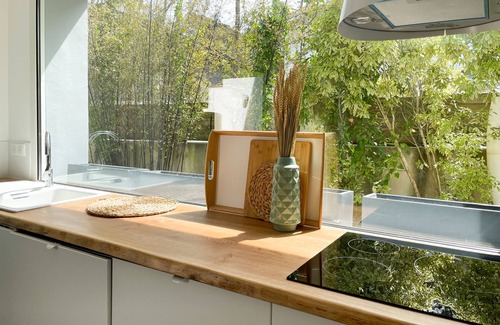 It has a living room with a large sofa bed with fully equipped kitchen ((dishwasher, induction hob, oven, microwave, fridge, toaster, filter coffee maker and Nespresso, electric kettle, washing machine), 2 individual rooms with large dressing rooms, a large bathroom, a cellar and a shaded terrace, 1 secure parking space and a Spa area: Sauna and Jacuzzi are at your disposal in the Villa
