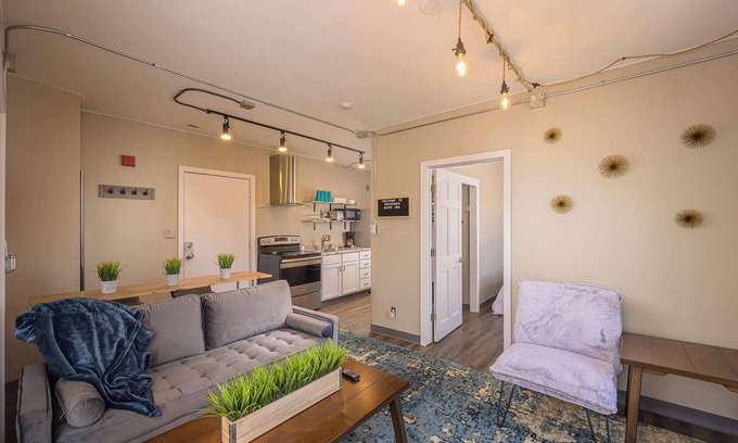 Discover the charm of our remodeled apartment in downtown Appleton. Experience the city's energy with events and attractions nearby. The apartment has an industrial-modern design. Performers at the PAC will love the location, a minute's walk away. Enjoy dining and entertainment options. Free parking is available with a provided pass.