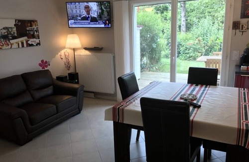 Ideal to rent for your vacations, in a green setting, but very close to the sea and its fine sandy beaches with a superb view, a recent apartment of 46 m2 full foot accessible to the handicapped, in a standing residence of Basque style for four people with a private and closed garden.