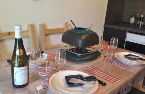 It is equipped with a dishwasher, a combination microwave oven, coffee maker, toaster, Senseo, fondue / raclette, radio, flat screen TV and dishes for 8, board games a few paperbacks children's games.