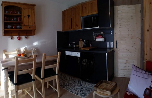Ground floor apartment fully renovated west facing beautiful views of the mountains with terrace, not overlooked and having received the LABEL ACCOMMODATION LES BELLEVILLE 3 FLAKES OF GOLD