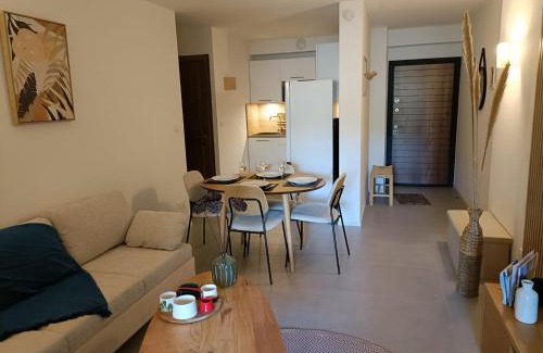 Appt neuf 2-4 pers avec loggia - Piscine chauffée - Bord de mer - Corse du Sud- Bonifacio offers accommodations in Pianottoli-Caldarello, 10 miles from Former Chapel of the Trinity and 11 miles from The Lion of Roccapina. This beachfront property offers access to a terrace, table tennis, free private parking, and free Wifi. Propriano Port is 30 miles away and King Aragon Steps is 14 miles from the apartment. This air-conditioned 1-bedroom apartment comes with a fully equipped kitchen, a seating area, a dining area, and a flat-screen TV. Guests can enjoy a meal on an outdoor dining area while overlooking the garden views. The accommodation is non-smoking. A continental breakfast is available at the apartment. Appt neuf 2-4 pers avec loggia - Piscine chauffée - Bord de mer - Corse du Sud- Bonifacio conveniently has both an outdoor pool and a private beach area. Bonifacio Port is 13 miles from the accommodation, while Porto Vecchio Port is 19 miles from the property. Figari-Sud Corse Airport is 3.7 miles away.