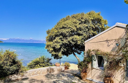 Apraos Beachfront House is all about location, character, views: and these are definitely priceless features! Probably one of the best located houses of the whole island of Corfu, this seafront property stands proudly right on the unspoiled sandy beach of Apraos/Kalamaki, yet with all the facilities of the lively Kassiopi less than 5 min drive away, and offers breathtaking views over the Ionian Sea, the green hills of Corfu, and the Albanian mainland opposite. Sleeping up to 5 to 6 guests in welcoming, traditionally Greek and air-conditioned interiors, Apraos Beachfront House is set to impress. Enjoy endless relaxation pampered by the gentle sound of the sea virtually on your doorstep, walk to one of the excellent tavernas nearby, taste a delicious charcoal grilled meal on your balcony: Apraos Beachfront House will amaze you.Inside, the house is set over one floor. It is airy and welcoming, decorated in traditional Greek style yet offering the most modern comforts for an incredibly relaxing seafront experience. There is a fully equipped kitchen (including dishwasher, washing machine, microwave, hob & oven, etc), a lounge with sofas and satellite TV (free channels), wi-fi internet connection through, as well as 3 bedrooms with 2 bathrooms. The master bedroom has a double bed + its own en-suite. The other 2 bedrooms have twin beds and one “french size” bed (120cm wide) that can accommodate 1 or, if required by the guests, 2 people to increase the occupancy of the villa up to 6. These 2 bedrooms share a functional bathroom with half-bathtub + shower over. All the bedrooms are air-conditioned (individually controlled, included in the rental rate).The outside areas of Apraos Beachfront House are truly to die for. A staircase leads directly to the sandy beach of Apraos (a true heaven along the famous north-east coast of Corfu) and spacious terraces both at the front and at the side of the villa provide sensational sea views. The sound of the waves just below will be the perfect mate for an unforgettable holiday under the shining Greek sun. Sunbeds, parasols, as well as comfortable dining and sitting areas for al-fresco relaxation are available. The property is also provided with barbecue and parking space.FOR LARGER PARTIES: Apraos House can be rented together with the nearby Apraos Studio, sleeping 2 guests. Contact us for details.NOTES: for the convenience of our guests, the rental price quoted includes air-conditioning, wi-fi internet, maid service twice a week, change of linen and hand/bath towels twice a week. A refundable security deposit for damages (euros 300) is required on arrival and refunded at the end of the stay.GREEK STAY TAX (climate resilience tax): euro 2 per villa per night not included in the rental rate and payable locally.