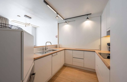 Bright Coastal Comfort in a Prime Location Welcome to this beautifully designed apartment on the 1st floor in Knokke’s charming Duinbergen neighborhood. With open, sunlit spaces and a seamless indoor-outdoor flow, this home offers front and rear terraces—perfect for enjoying your morning coffee or an evening drink. The spacious living area, with a fully equipped open kitchen and cozy lounge, is ideal for unwinding after a day by the sea. Two well-appointed bedrooms provide restful nights: one with a double bed and private bath, and another with a modern double bunk bed and en-suite shower—great for families or groups. Steps from the Beach & Attractions Just a short stroll from the Zeedijk promenade and mini golf course, this apartment places you at the crossroads of relaxation and adventure. Spend your days basking on the beach, wandering the coastline, or exploring the nearby Knokke-Heist town center. From designer boutiques to quaint cafés, everything is within easy reach, making it easy to enjoy the best of Belgian seaside charm. Modern Comfort & Thoughtful Amenities Whether you're preparing a meal in the fully stocked kitchen (with oven, microwave, juicer & Nespresso) or streaming your favorite series on Netflix, this apartment is designed with convenience in mind. Digital TV, free WiFi, quality bedding, and a wheelchair-accessible layout ensure a comfortable stay for all.