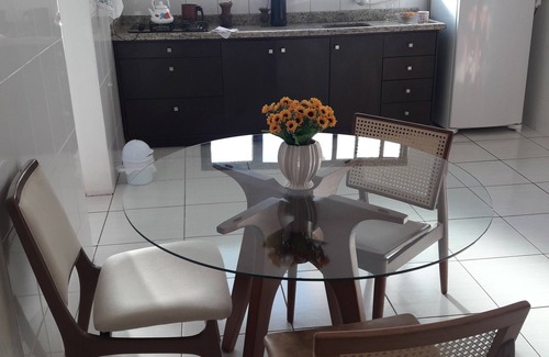 Apt great location, allows the guest to move with peace of mind even without a car. Spacious fit, clear, excellent solar position throughout fit. It has a wood stove. Apartment located in the Brasão supermarket block, close to restaurants, hotels, medical and dental clinics, bus terminal, schools and universities. Apartment with 3 bedrooms, 2 bedrooms with double bed and 1 bedroom with single bed, sofa bed in the living room.