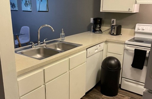 Welcome to Palm Springs! Enjoy our modern and cozy 1 bedroom and 1 bathroom - perfect for a couple’s getaway or a calming stay for a traveling working professional. This apartment (700 sq ft) features a generous size bedroom, full bath, kitchen, living room and dining area plus a cozy private patio facing the San Juancito mountains. Enjoy the community pool, Smart TV and FREE WIFI. LOCATION, LOCATION...only 1 block from the main strip in downtown Palm Springs! Shops, restaurants, bars and more!
