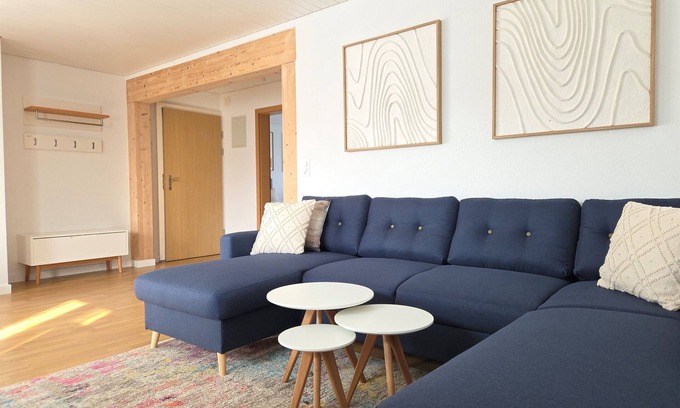 Newly renovated 3.5-room apartment for 5 people with private parking. Zurich in 30 min, Lucerne in 40 min by car, train station only 10 minutes on foot. 70 m² on the 4th floor (no elevator) with self check-in, 2 bedrooms, dining/living room with dining table, sofa bed & 55" smart TV (Netflix), fully equipped kitchen with dishwasher & washer/dryer, 1 full bathroom and 2 balconies. Fast Wi-Fi included.