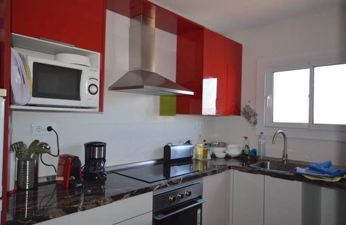 Holiday apartment with fantastic views, communal parking and swimming pool, for 6 people. Dining room-living room with sofa bed (1 x 90) and reversible air conditioning (system Split), separate kitchen, 2 bedrooms: 1 bed x 1.50 + bunk bed (2 x 90) + 1 bed x 90, bathroom with shower. Terrassa of 25 m² with exterior furniture, views in the fields and sea. Wifi, reversible air conditioning in the dining room and one in one of the bedrooms (Split System). Very situated just 1 km from the beach Amphora, where you can sunbathe and enjoy nautical activities such as windsurfing. Near the Aiguamolls de l'Empordà, a nature reserve in which you can escape, rest in nature. The rental price includes cleaning at the end of your stay, as well as sheets and towels Groups under 25 are not accepted. Pets are not allowed.