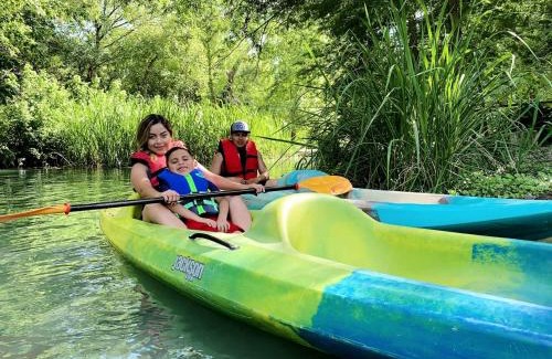 - Aquatic Retreat: Waterfront Tented Cabin with Full Amenities for Water Lovers in Cibolo, TX