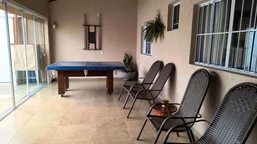 Aréa de Lazer Borges Oliveira is located in Jardinópolis, just 14 miles from Municipal Theater and 14 miles from Ribeirao Preto Bus Station. This property offers a private pool, free Wifi, and free private parking. Outdoor seating is also available at the vacation home. Providing a balcony with pool views, this vacation home also provides guests with a cable flat-screen TV, a well-equipped kitchen with an oven, a microwave, and a fridge, as well as 3 bathrooms with a shower. The accommodation is allergy-free. Guests can also relax in the garden. Magic Gardens is 15 miles from Aréa de Lazer Borges Oliveira, while XV de Novembro Square is 14 miles away. Dr. Leite Lopes–Ribeirão Preto State Airport is 11 miles from the property.
