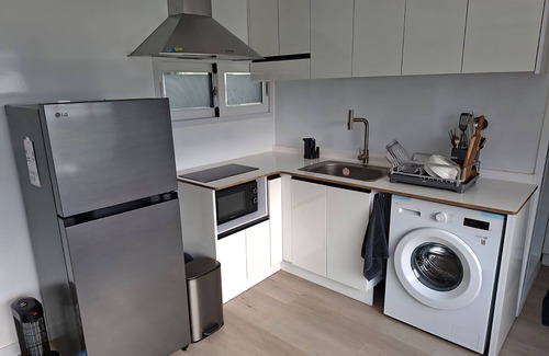 - *MODERN COMFORTS:** Fully equipped kitchen, sleek bathroom with hot water, Smart TV, and high-speed WiFi.