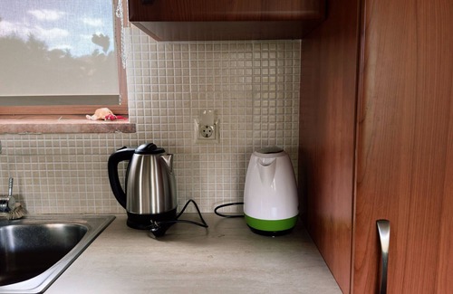 The fully equipped kitchen makes meal preparation easy, and you’ll find a coffee machine, toaster, and two kettles to start your day with coffee or tea while enjoying the stunning views. Next to the living room, there’s a private dining area with its own bathroom, perfect for relaxing or working in a quiet, scenic environment.