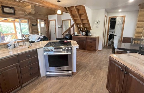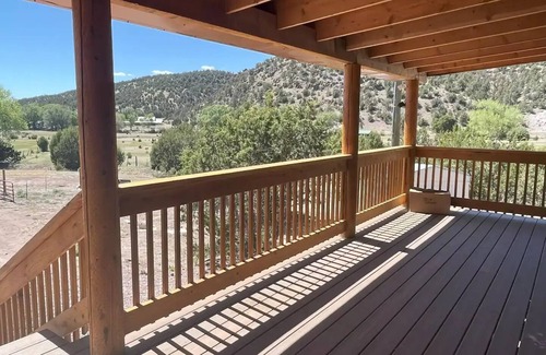 A hunter's paradise in NM Elk Hunting Unit 16D. This 1,680 square foot cabin built from 12-inch logs sleeps up to 9. The ambiance is fascinating - fabulous views through large windows across green meadows and pine forests. From 10x40 covered porch listen to the Tularosa Creek running by the cabin year-round. A great quiet get-away where you can almost touch the stars and may see elk walking outside the window. There is wildlife and nature everywhere with direct access to the Gila Wilderness. Up to 9 guests - extra charge for over 6.
