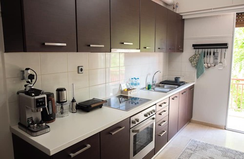 The apartment has a parking space controlled by a bar, large balcony, Autonomous heating, Air condition, washing machine, Wi-Fi, Smart TV, EON TV (Nova sports and cinema, Cosmote sports), 2 bedrooms (1 Master Bed with a double bed and 1 Children's with 2 single beds that can be joined to become a double), an independent large living room with a sofa that opens and can sleep 2 people as well as a separate kitchen fully equipped with a built-in