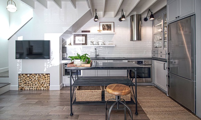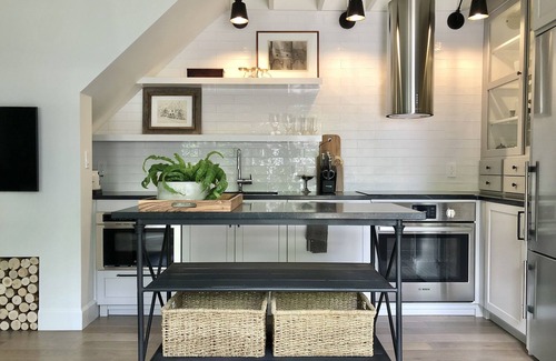 Enjoy a curated experience at this two-story modern cottage-style condo. You will be greeted with a front terrace perfect for fresh air dining and lounging. Leading into the house, there is an open-concept main living area with an amazing full kitchen. The upstairs loft bedroom will make you feel like you're on Cloud 9, offering treetop ambience through large windows while laying in an enveloping comfort of a king bed. Heated bathroom floors, pure linen sheets, soapstone counters, original art - this space was immaculately designed to make you feel cozy and elevated. It offers amenities from morning Nespresso to plush bathrobes to relax in at the end of the day.