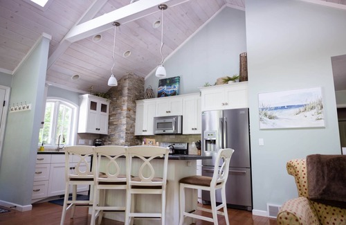 Baileys on the Rocks "Arbor" Cottage is situated on a wooded lot just across the street from Lake Michigan and within walking distance to all that downtown Baileys Harbor has to offer. The cottage was completely renovated in 2012, and features so much character with it'svaulted ceilings, open floor plan, Door County field stone fire place and a bright, beautiful kitchen.
