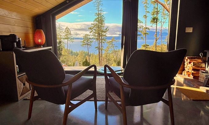 Welcome to Arbutus Ridge, a cozy, architecturally unique cabin surrounded by towering fir and arbutus trees with a stunning view of the ocean. This peaceful, private cabin offers the perfect escape from the hustle and bustle of daily life. With its open airy design, the cabin brings the beauty of nature right inside, allowing you to unwind and take in the serene surroundings. Whether you're relaxing by the wood burning stove on a cool winter’s day, watching the tugboats towing booms, or enjoying the quiet of the forest, you'll feel a true sense of calm here. It’s the ideal spot for anyone looking to reconnect with nature.