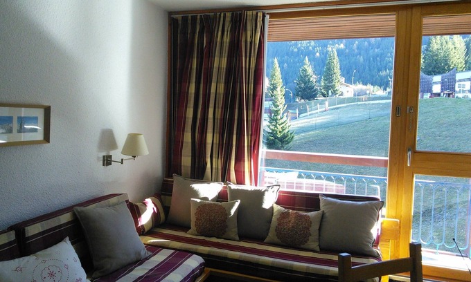 Pleasant renovated studio but faithful to the Charlotte Perriand spirit. Classification 2 Paradiski crystals **. Located in Pierra Menta residence, known as calm. Balcony not overlooked mountain side, Mont-Blanc view.