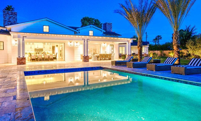 Find yourself living the Luxury Life at this beautiful villa. Located in the private and prestigious community of Arcadia, just minutes from Old Town Scottsdale, this is the perfect getaway for an entertaining and memorable vacation. With a modern French country design and multiple desirable features, photos just don’t do this gorgeous home justice. Guests appreciate the stylish kitchen, inviting primary retreat, retractable glass patio doors, and breathtaking backyard oasis.