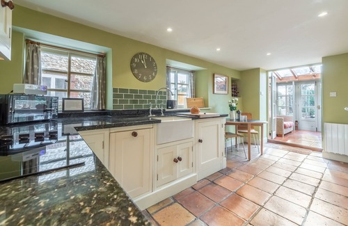 A popular holiday cottage for many years, Arch Cottage enjoys a modern heating system and upgraded bathroom, along with fresh country decor and stylish furnishings. The cottage presents as a very elegant and comfortable character cottage that really is a perfect bolt hole to escape to at any time of the year. On the ground floor, there is an invitingly cosy sitting room with ambient wood burning stove, a well-equipped spacious breakfast kitchen, and an charming dining conservatory that overlooks the pretty south facing garden. Upstairs on the first floor, three bedrooms (double, twin and a large single) and two bathrooms, one of which is en-suite. A distinct advantage in this bustling village is the garage parking which is suitable for a family-size car (not suitable for larger SUVs) or as secure bike storage.