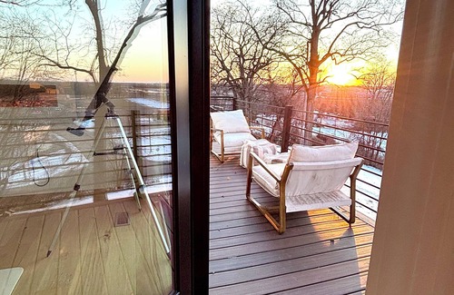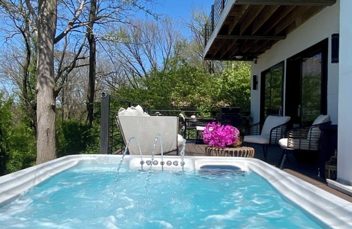 Experience luxurious living in this sophisticated modern home, centrally located and just 5 Minutes from Downtown St. Louis with an ARCH VIEW! Enjoy FREE wine, water & continental breakfast: with 2 levels of expansive outdoor decks and a lower level indoor dry sauna, fitness room and cozy putting green with clubs and balls. This 4 bed sanctuary boasts memory foam mattresses, a 72 inch crescent soaker tub, pampering multi-function shower panels, a 14ft cocktail pool/jacuzzi that can be heated upon request & 2 fireplaces. Premium outdoor sofa, dining chairs and bbq grill. Ask about our add-on premium services like: on-site car rental, charcuterie board, party decor, massage and nail care, mid-stay cleaning and airport pickup/drop off service.