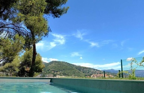 Architect-designed 9-room villa is located in Falicon. Architect-designed 9-room villa provides accommodation, featuring Pool, Sports/Activities, Bedding/Linens, among other amenities. This Villa features Pool, Sports/Activities, Bedding/Linens, to make your stay a comfortable one.