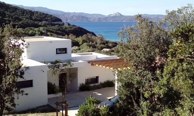 Architect-designed house, 50 meters from a white sandy beach, splendid sea view | House in Farinole
