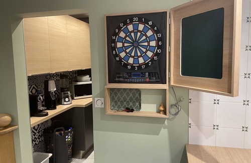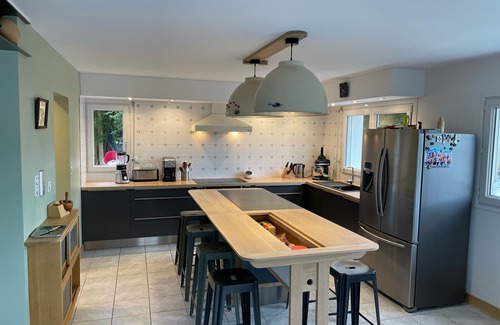 Equipment: 2 fridges, 1 freezer, 1 dishwasher, 1 oven, Guy Degrenne dishes, many kitchen accessories, design table for 12 people, table for 6 people (for children), 2 baby seats, Orange TV, Apple TV, WIFI, Marshall bluethoot speaker, 2 coffeemakers including a nespresso, kettle, toaster, raclette machine, microwave, board games, fireplace.