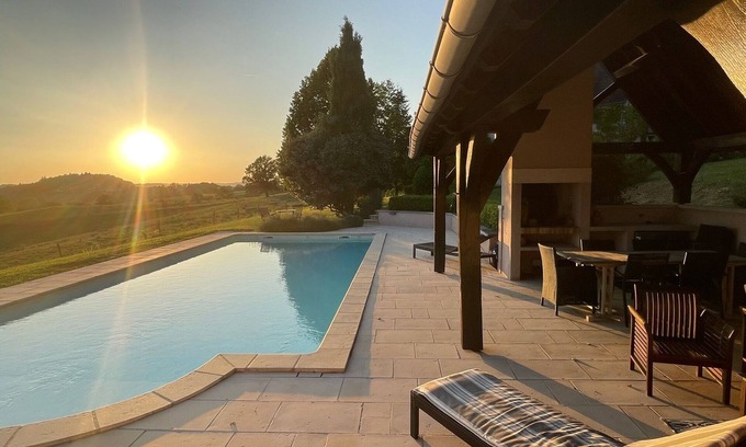 We offer our home with 11x5m pool with an exceptional view of the castle of Hautefort. Surrounded by meadows and woods you will enjoy a quality environment of absolute calm.