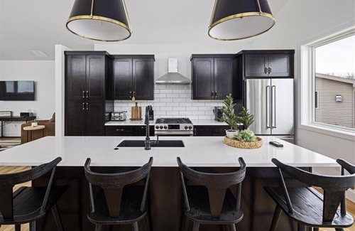 This modern Montana home has 4 bedrooms and 2.5 bathrooms, with high-quality luxurious linens and towels included to make your stay perfect! There are 3 king-sized beds in three bedrooms and the fourth bedroom has two full-sized bunk beds (4 full-sized beds total), making this home perfectly comfortable for 8 adults (or 10+ if younger children want to use the bunk beds).