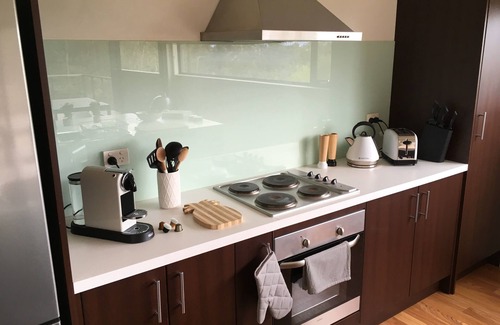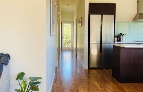 Accommodation consists of a fully equipped kitchen with a Bosch dishwasher, a large fridge/freezer, a Baccarat 6 piece cookware, Scanpan knives and a Nespresso coffee machine. We supply coffee pods, tea, and the usual condiments. The dining area will seat up to 6 people and probably has one of the best views in the house through the picture window. The house has two bathrooms one with a bathtub. The laundry has an Electrolux front loader washing machine and a Electrolux dryer. All linen and bath towels are organic cotton and freshly supplied for each visit.