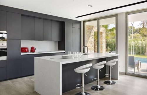 Cambrils: Very modern, beautiful villa "Ardiaca", 3 storeys, built in 2018. In a quiet, sunny position residential area (villas), 200 m from the sea, 200 m from the beach. For shared use: table tennis. Private: large, well-kept garden with lawn 250 m2 trees, swimming pool angular (36 m2, seasonal availability: 01.Jan. - 31.Dec.). Outdoor shower, terrace, garden furniture, barbecue, pool maintenance by the owner/gardener. Public parking on the road. Grocery 600 m, supermarket 2.3 km, restaurant, bar 500 m, bakery 600 m, pedestrian zone 200 m, bicycle rental 4 km, bus stop "N-340 benzinera La Dorada" 900 m, railway station "Cambrils" 3 km. Sports harbour 3 km, golf course (18 hole) 12 km, surf school, sailing school 600 m, riding stable 9 km. Nearby attractions: Port Aventura / Ferrari Land 16 km, Aquopolis 20 km, Aquum Spa 20 km, Jumpland 5 km. Hiking paths: La Mussara 45 km. Please note: suitable for families. The owner does not accept any groups. The owner does not accept any youth groups. Neighbourhood highly sensitive to noise. Quietness and good behaviour expected.