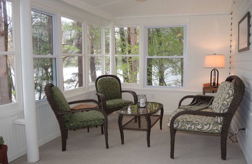 Ardeevin is a welcoming 2 bedroom / 2 bath home that will comfortably sleep 6. The main level features an enclosed sunroom with glass on 3 sides. The main level sunroom includes a seating area and a dining area. One bedroom and one bath are located on the main level. The lower level has another sun room with glass on 3 sides as well. The lower level sunroom has a daybed which has a twin bed and a trundle twin. There is 1 bedroom and 1 bath on the lower level.