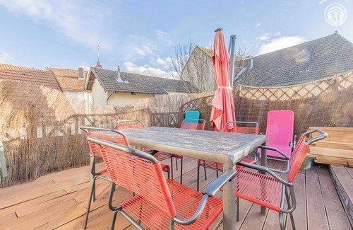 A practitioner of a "well-being" center based on site (traditional Chinese medicine), Nicole welcomes you to a fully restored 19th-century townhouse, nestled on the edge of a quiet lane in a peaceful residential area just a stone's throw from the town center and amenities, the Vallon lake (water sports center) and leisure facilities (including golf). Nestled against the vast wild forest of Planoise (a veritable "green lung" in the southern foothills of the Morvan massif, perfect for relaxing walks on foot or by mountain bike) in the heart of a magnificent, unspoiled setting of gentle rolling countryside, this two-thousand-year-old city, accredited as a "Town of Art & History", boasts a unique heritage: exceptional Gallo-Roman remains (Temple, gates, theatre, Couhard Pyramid, etc.), medieval remains (12th-century St-Lazare Cathedral, ancient ramparts, Ursuline Tower, 11th-century Romanesque chapel, upper districts with half-timbered houses, etc.) and classical remains (19th-century covered market halls, 1884 Italian-style theatre, 17th-century military high school, etc.). Spacious, comfortable gîte. Pleasant, bright living room. Fully equipped (including piano and video projection screen with large DVD library). Warm, contemporary style blending a "country chic" feel with ethnic touches, enhanced by the elegant beams, timber framing, and period fireplace mantel. Plenty of charm. Cozy atmosphere. Large, exposed balcony-terrace. Composition: House comprising the owner's professional office and three gîtes. Shared laundry room on the ground floor (washing machine). Fiber optic Wi-Fi. Heat pump heating. Gîte on the first floor adjoins another gîte (separated by a door). Living room-kitchen-lounge, 3 bedrooms (double bed 160x200cm / double bed 160x200cm / double bed 140x190cm + single bed 90x190cm), "piano-bar" relaxation area (double sofa bed 140x190cm as an extra), mezzanine (single bed 90x190cm), bathroom (shower), separate toilet. Private balcony-terrace. Bicycle storage. Public paid parking on site. Supermarket 500m. Train station 1.5 km.