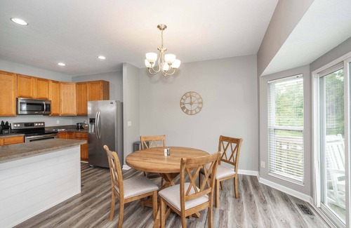 The home’s bright and airy interior sets the perfect tone for relaxation and connectivity with loved ones, with all the modern amenities you’ve come to expect in a vacation retreat. The plush sectional is an ideal spot for a family movie night or bingeing episodes of all your favorite shows on the smart TV. Up in the loft, a more intimate entertainment experience awaits, where you can break out the board games or watch the movie of your choosing, while a dedicated workspace will help you keep up with work tasks. Back downstairs, the kitchen showcases stainless steel appliances alongside ample countertop space and cabinetry for preparing and storing all your snacks and goodies. In the quiet morning hours, brew up a fresh cup of coffee and take it out to the deck to soak in the fresh and sweeping views as you make plans for the day ahead.