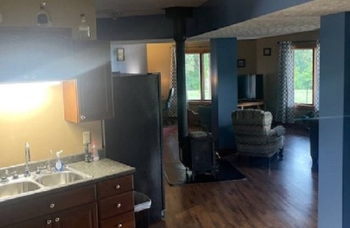 2 min and 7 min from boat launches onto the Kentucky River. The Ark Encounter in Williamstown is 50 min away. Madison IN is 50 min away with all their festivities and shopping. WE live 30-60 min from several bourbon distilleries and wineries. Scenic roads for motorcycle enthusiast. 7 min. from Perry Park Golf Resort. Hour from Louisville, Lexington and Cincinnati. State capital is 30 min away. Pull up a chair and enjoy the views and nature from the back yard. When you pull in and park you get to see the view of our backyard and the mountains in the distance. You will walk into the living room and there is a table to put your things on. Light switch right by the door for living room and outside light. Over by the steps going up are the kitchen lights. There will be a night light on in the bathroom, one over the kitchen sink and small lights in the two bedrooms to light the way for you. There will be lawn chairs outside in the plastic tote that you can use while you either have a coffee or other beverage and enjoy the peace and quiet.