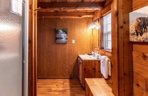 With its starry, starry nights or lofty morning views of mist-shrouded Ponca below, the Arkansas Cabin is a luxury cabin rental that’s hard to beat any time of day! Gaze up at the stars from your hot tub, then retreat indoors to the soft glow and warmth of your nativestone fireplace. During the day, rock in the porch swing with a good book or nap in your fluffy king-size bed. Whether you’re looking for a romantic getaway or a retreat for four (dbl occ), the Arkansas Cabin delivers on quality furnishings, spacious accommodations and amenities!