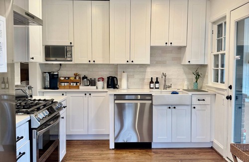 The fully equipped kitchen features high end stainless steel appliances,quartz countertops, and a robust coffee bar—offering a drip coffee maker, Keurig pods, and a French press to suit every preference. Ample cookware and dinnerware make it easy to prepare and enjoy home-cooked meals.