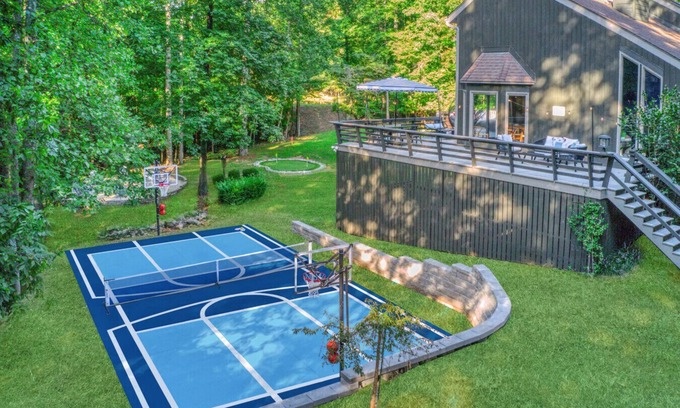 Discover the ultimate retreat in our spacious 7-bedroom home, perfect for family gatherings or group getaways. Enjoy endless fun with your own basketball and pickleball court, practice your swing on the golf putting greens, and challenge friends to arcade games.