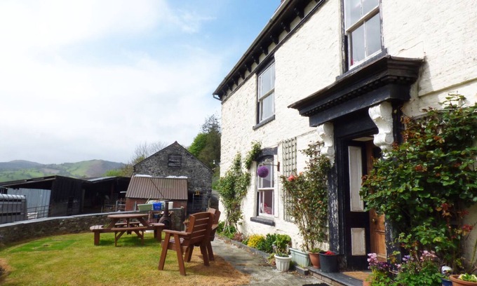 This Grade II listed rural cottage is situated on a working farm with great countryside views of the hills and mountains beyond, two miles from the village of Llanrhaeadr ym Mochnant and can sleep six people in two bedrooms.