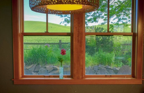 Experience vineyard living when you stay in the Armstrong Vineyard Cottage. This lovely wine country cottage is nestled in the rolling hills of the Palouse north of downtown Walla Walla. With breathtaking views through every window, you will enjoy the Blue Mountains, rolling wheat fields, and the Armstrong family’s estate vineyard.
