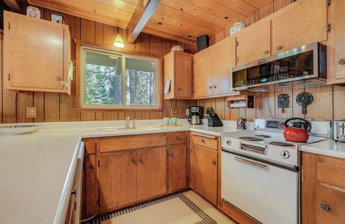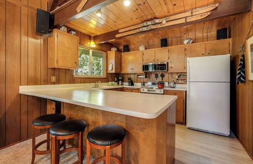 Welcome to ‘Our House,' a charming chalet-style home in Arnold! The cabin’s open floor plan boasts a great room with dramatic wood-beamed ceilings, a gas fireplace, and a wall of windows with forest views. After skiing at Bear Valley or hiking in Big Trees State Park, host a BBQ on the large wraparound deck. With 2 bedrooms, a spacious loft, and 2 baths, this vacation rental offers ample space and a delightful ambiance!