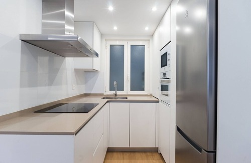 Arrasate Center, is an exclusive brand new modern apartment. It's located in the city center at Arrasate Street, just 2 minutes walking from La Concha Beach in the most comercial area of the city with all kind of services. The San Martin Market is just 50 meters far. The apartment has been entirely remodelled using first rate materials and furniture. It has been decorated taking care of even the smallest details and it is completely equipped. It is located on the fifth floor of a building with elevator and the qualities of the material of the windows provide a quiet atmosphere.There are three bedrooms and two bathrooms with shower tubs. There is an open plan kitchen and it is equipped with top-range appliances and complete kitchenware. The main bedroom has a double bed of 150 cm and the other bedrooms have two 90 cm single beds each. It is perfect for a family or two couples that are planning to spend their holiday in San Sebastian, in an accommodation in the city centre and right by La Concha Beach. This apartment has no private parking but you will find a public parking 50m away.Apartment features: