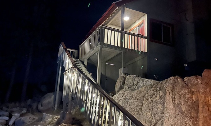 ArrowBear Cabin, right across the street from the seasonal Arrowbear Lake, and Park. Life nestled among giant boulders in complete privacy on a 20,000+ sq ft lot. Enjoy the downtown area of Running Springs, which includes, restaurants, post office, library, playground, farmers market on Saturdays, and much more! The popular ski area at Snow Valley, Lake Arrowhead, Blue Jay, Crestline, Lake Gregory, Twin Peaks, are just minutes away. Highway 330 is close by, making it an easy commute up and down the mountain. Parking is pretty strict so make sure to ONLY park in our parking lot, which can fit 2 cars. Parking is to the left when looking up the stairs. We also have (Autel Home Level 2 EV Charger), please ask for more Information.